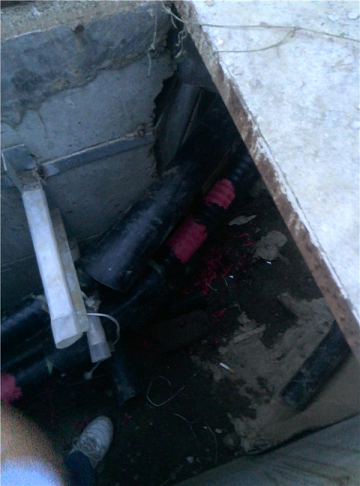 經過測距設備檢測故障位置距離測試端30米。設備再次加壓,在故障位置明顯看到有燃弧現(xiàn)象,定位完畢。
